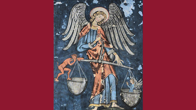 Visuel : La pesée des âmes - Fresque médiévale de l’église protestante Saint-Pierre-le-Jeune (Strasbourg)